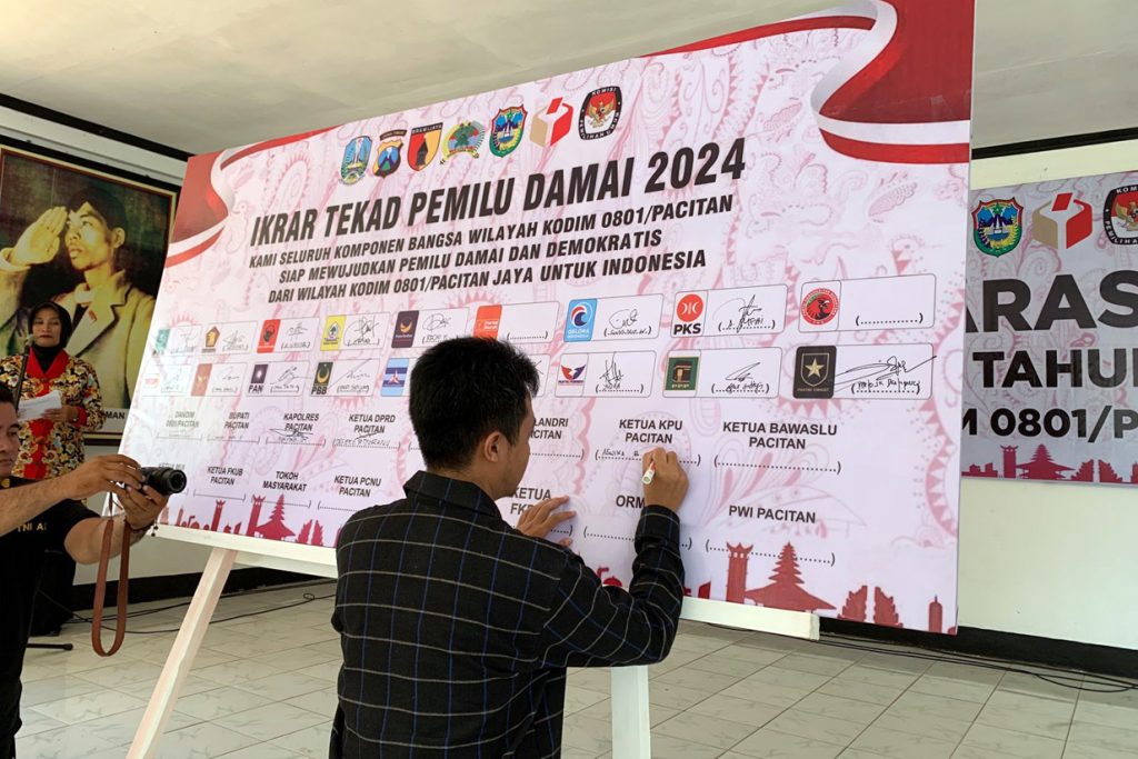 Penandatanganan komitmen bersama deklarasi Pemilu damai di Kabupaten Pacitan.
