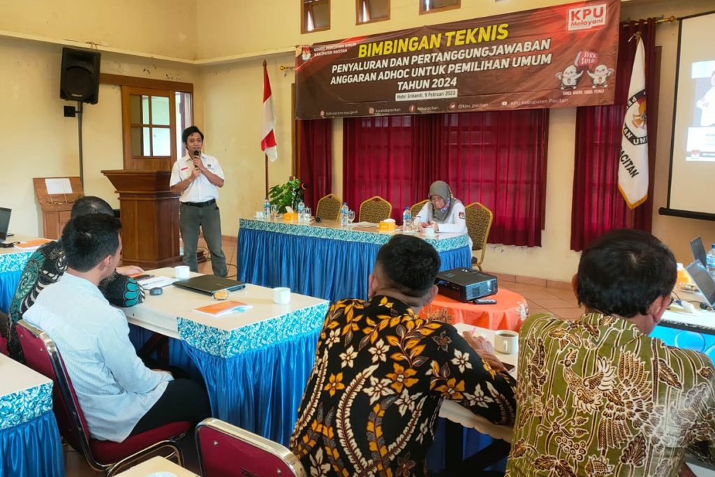 Selain pelantikan Pantarlih, beberapa agenda dilakukan KPU Pacitan pada sepekan terakhir. Salah satunya adalah bimtek mengenai tugas kesekretariatan PPK dan pengenalan naskah dinas bagi PPK dan PPS. Acaranya digelar di ruang pertemuan Hotel Srikandi, Kamis (9//2). Saya mementori langsung bimtek mengenai naskah dinas PPK dan PPS ini. Pesertanya: ketua PPK, anggota PPK yang membidangi umum dan logistik, serta seorang staf sekretariat PPK.